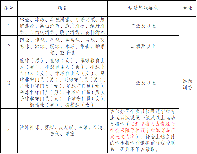 (一)运动训练专业招生项目